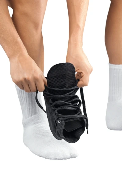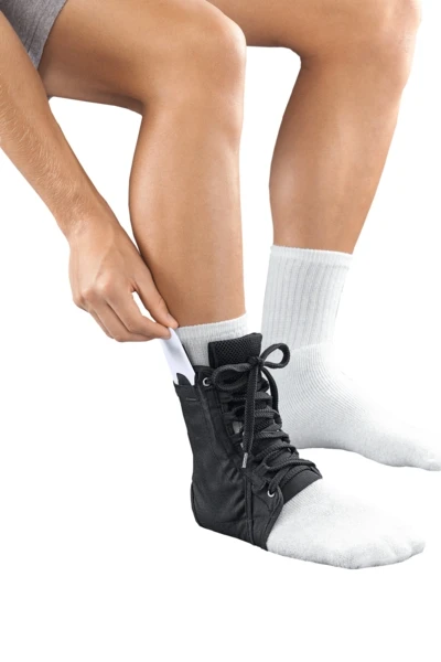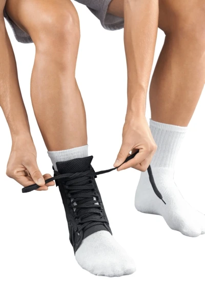 При повреждениях связок голеностопного сустава необходима его стабилизация на весь период лечения. При частичных разрывах связок, так называемых растяжениях поможет protect.Ankle lace up. При травмах он является альтернативой традиционному и пластиковому гипсу, а при хронической нестабильности сустава используется постоянно.