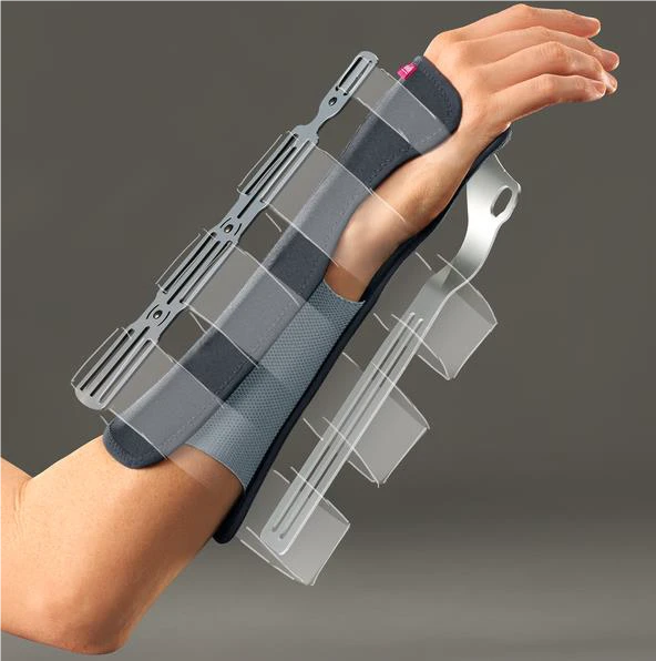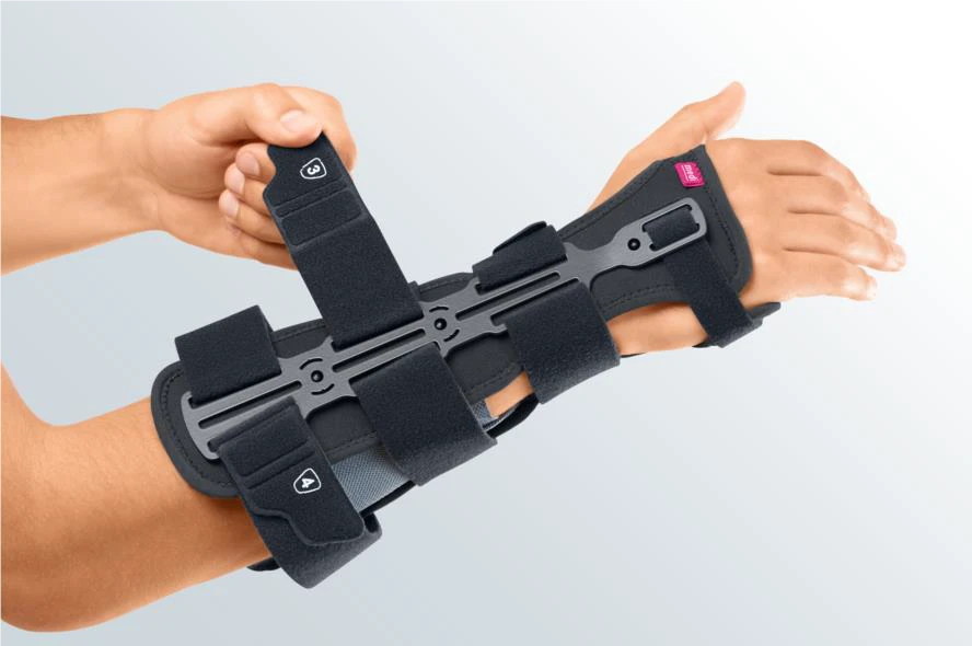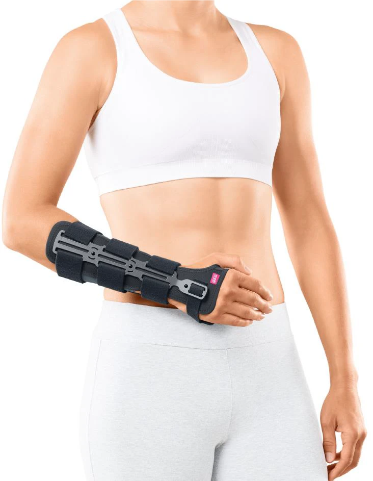Ортез Manumed RTX на лучезапястный сустав подойдет для лечения переломов, тендинита, травм связок и других повреждений запястья. Две длинные ладонные и тыльные алюминиевые шины имеют анатомическую форму и могут быть индивидуально адаптированы. Они обеспечивают максимально надежную иммобилизацию сустава – его можно использовать вместо гипса.