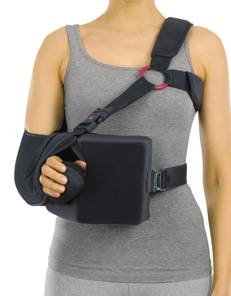 Шина для плечевого сустава medi SLK 90 – идеальное решение при лечении повреждений вращательной манжеты, когда требуется иммобилизация верхней конечности с разгрузкой задних отделов суставной капсулы плечевого сустава.