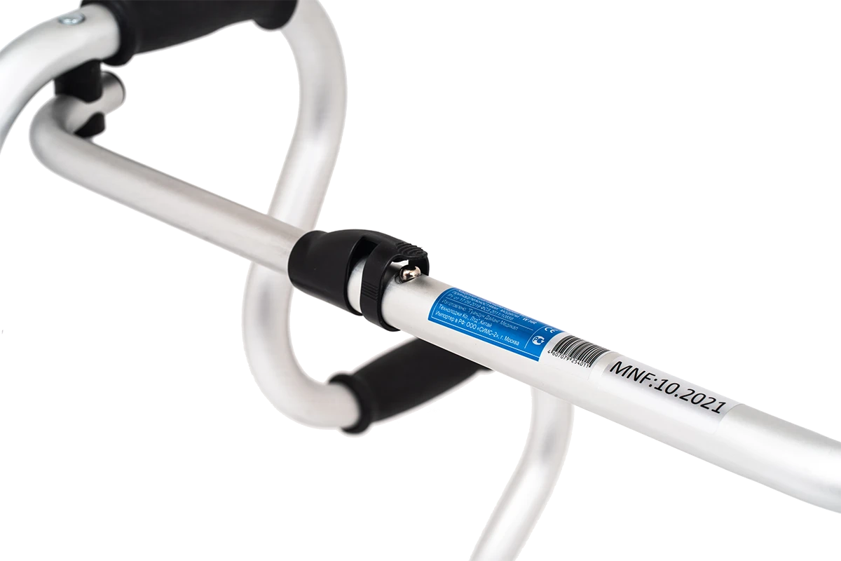 Резиновые насадки имеют хорошее сцепление с поверхностью для предотвращения скольжения. Ходунки рассчитаны на вес до 135 кг. Вес ходунков = 2,45 кг.