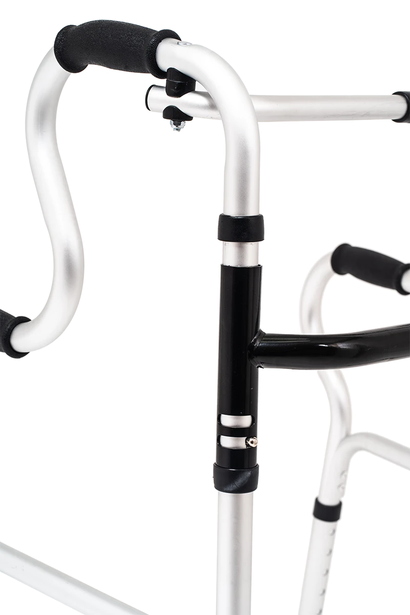 Удобные двухуровневые ходунки-опоры W-HR – надежная опора при ходьбе, когда имеются травмы или заболевания опорно-двигательного аппарата. Они создают устойчивую опору для передвижений. Ручки на двух уровнях размещены таким образом, чтобы нижние помогали подняться из положения «сидя», а верхние использовались непосредственно для ходьбы. Регулировка высоты позволяет подстроить их индивидуально под рост. Материал, из которого выполнено изделие – алюминий, отличающийся легкостью. Благодаря конструкции они могут использоваться в двух режимах, «с шагом» и «без шага».
