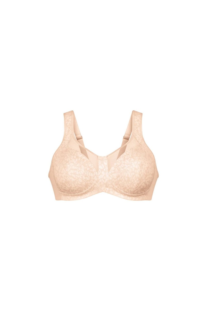 Комфортный бюстгальтер с глубокими чашками с Т-образным швом, с нежными кармашками для протеза. Боковой подкрой, переходящий в бретели, выравнивает силуэт.